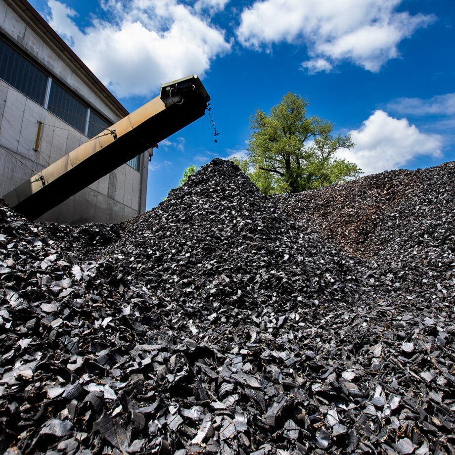 Gli pneumatici vengono poi frantumati meccanicamente a temperatura ambiente, così da preservare le caratteristiche originarie della gomma e le sue proprietà elastiche e di resistenza.